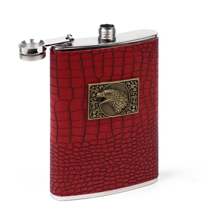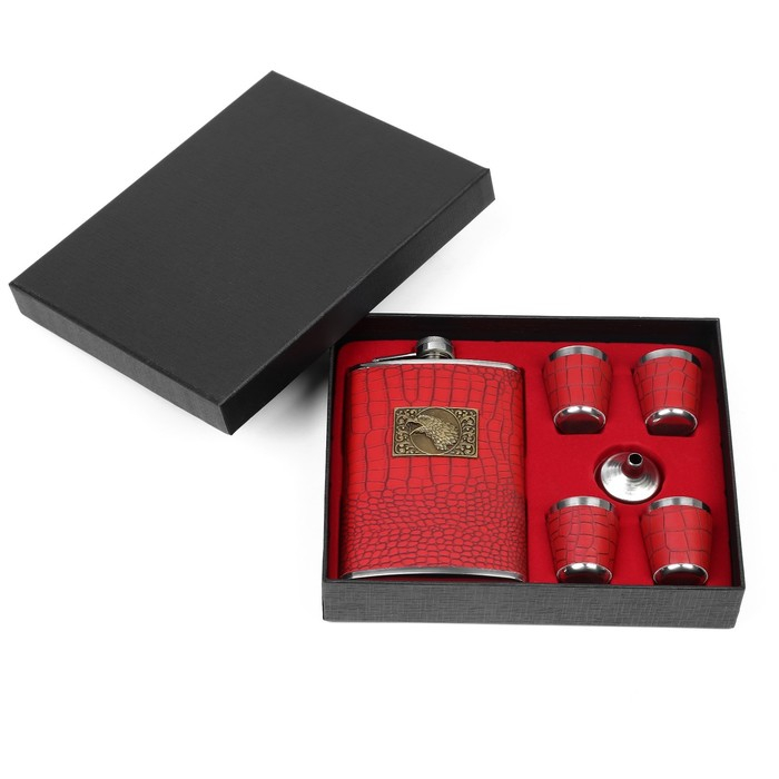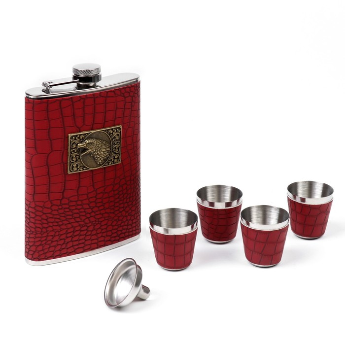 Подарочный набор 6 в 1 "Орёл": фляжка 270 мл + 4 рюмки в коже, воронка