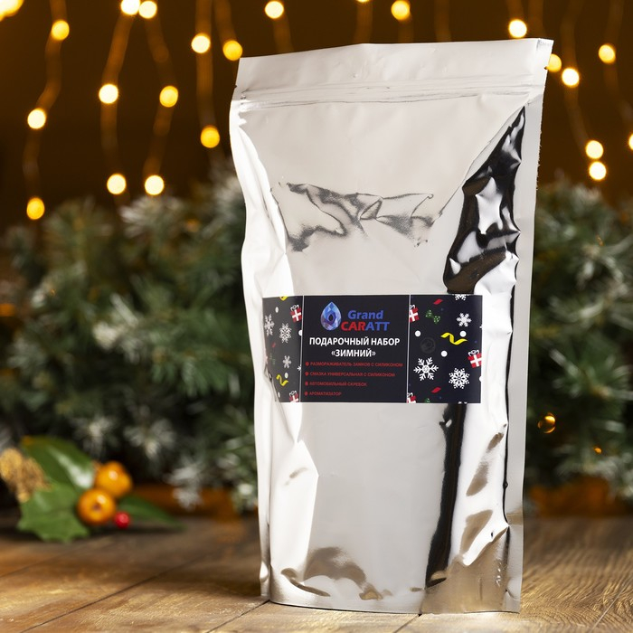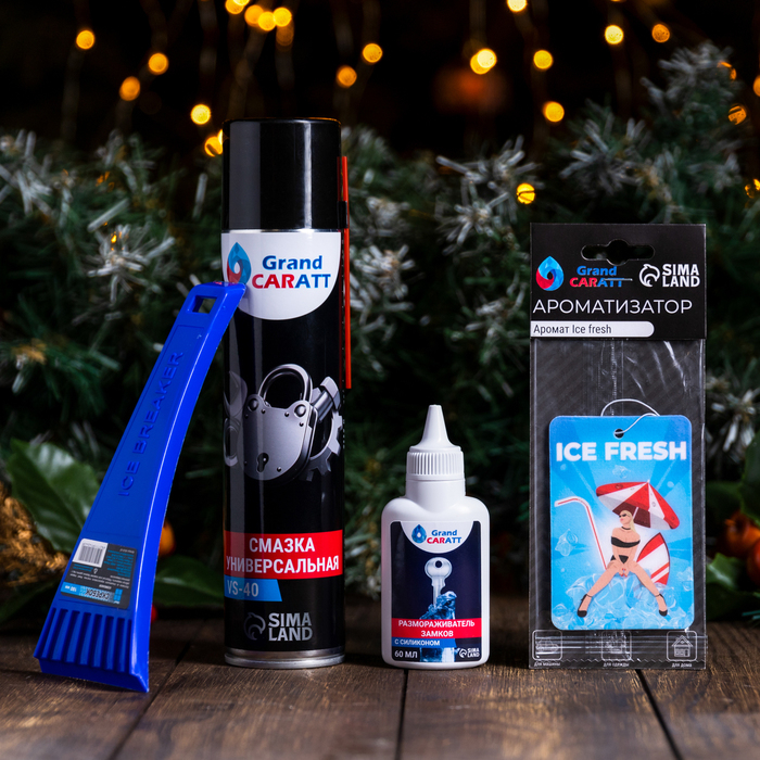 Подарочный набор автолюбителя Grand Caratt "Зимний": Скребок, размораживатель замков, ароматизатор, смазка