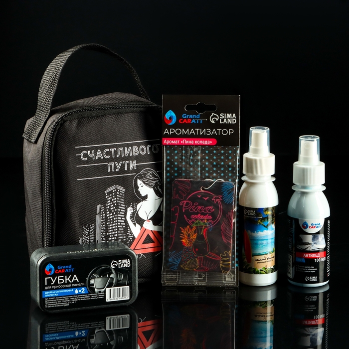 Подарочный набор “Счастливого пути” от Grand Caratt – это прекрасный выбор для автолюбителей, которые ценят комфорт и стиль. В наборе вы найдете все необходимые аксессуары для ухода за автомобилем, которые всегда будут под рукой.