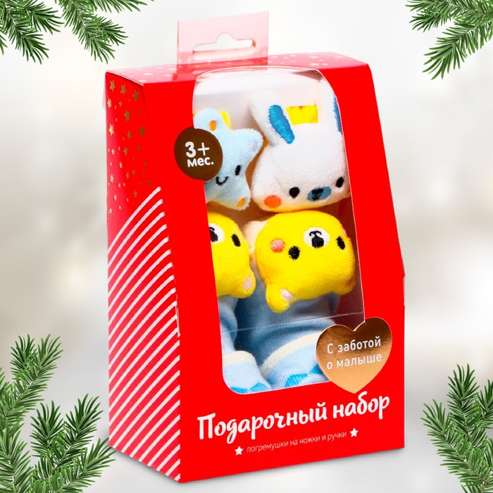 Подарочный набор браслетики + носочки погремушки «На полянке», Крошка Я
