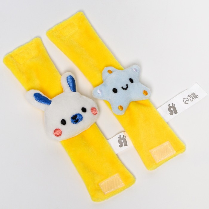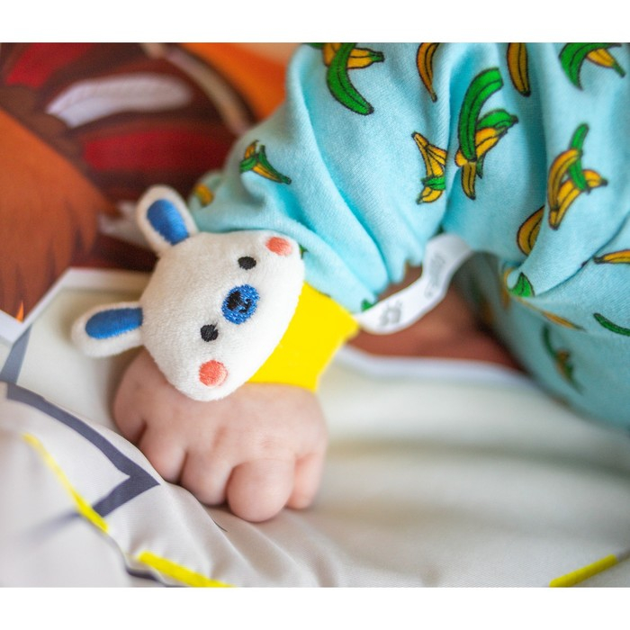 Мягкие игрушки - браслеты крепятся на ручки ребенка и застегиваются на удобные липучки. А носочки одеваются на ножки.