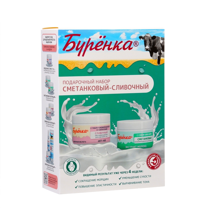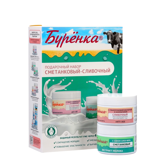 Подарочный набор "Сметанковый-Сливочный" - это набор продуктов, которые помогают поддерживать здоровье и красоту кожи лица и кожи вокруг глаз.