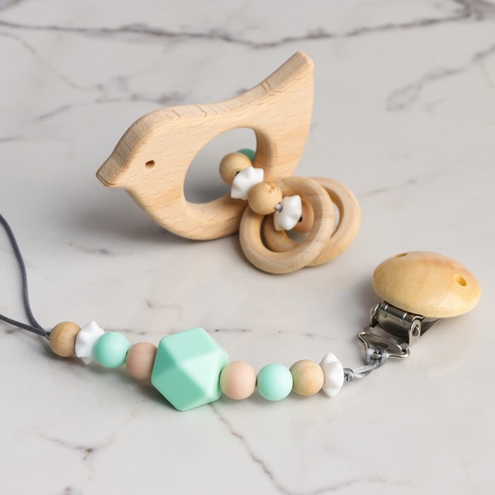 Подарочный набор: Держатель для соски и прорезыватель, мятный, Крошка Я