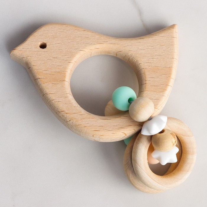Прорезыватель для зубов «Bird» с эластичными и деревянными элементами