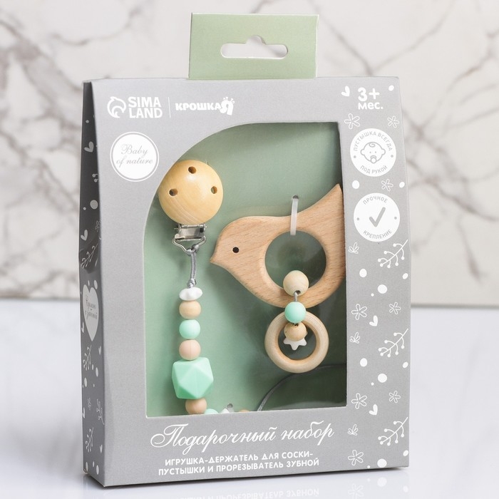 Подарочный набор: держатель для соски-пустышки и грызунок-прорезыватель «Малыш»