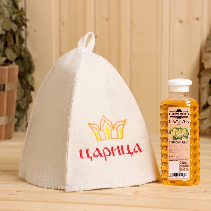 Подарочный набор для бани "Добропаровъ" шапка "Царица" и шампунь