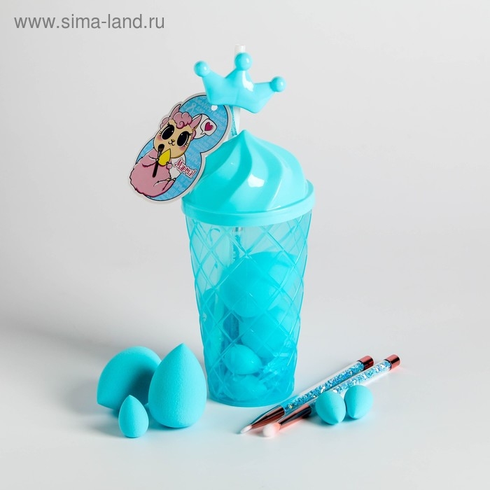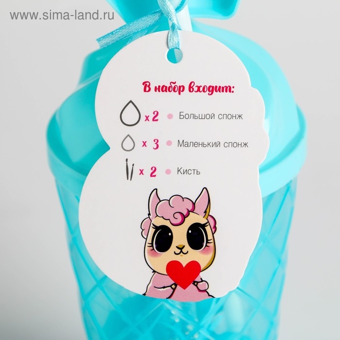 Подарочный набор для создания макияжа «Милая альпака», 2 больших спонжа, 3 маленьких спонжа, 2 кисти для макияжа, BEAUTY FOX
