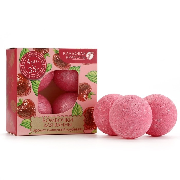 Подарочный набор косметики, бомбочка для ванны 4 х 40 г, аромат клубники, КЛАДОВАЯ КРАСОТЫ