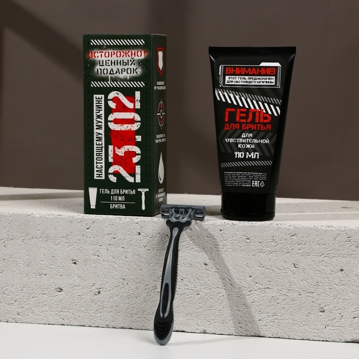 Подарочный набор косметики «Ценный подарок», гель для бритья 110 мл и бритва, HARD LINE
