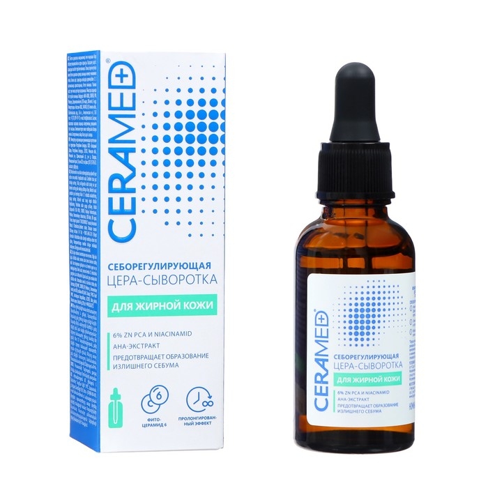- Цера-сыворотка для лица Себорегулирующая с ниацинамидом и цинком, 30 мл. Сыворотка стимулирует заживление повреждений и восстановление кожи. Способствует устранению воспаления и покраснения на лице. Снимает чувствительность дермы, дарит чувство комфорта на протяжении всего дня.