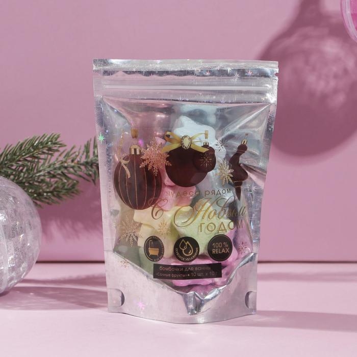 Подарочный набор косметики «Чудеса рядом», бомбочки для ванны 10 х10 г, аромат сочных фруктов, ЧИСТОЕ СЧАСТЬЕ