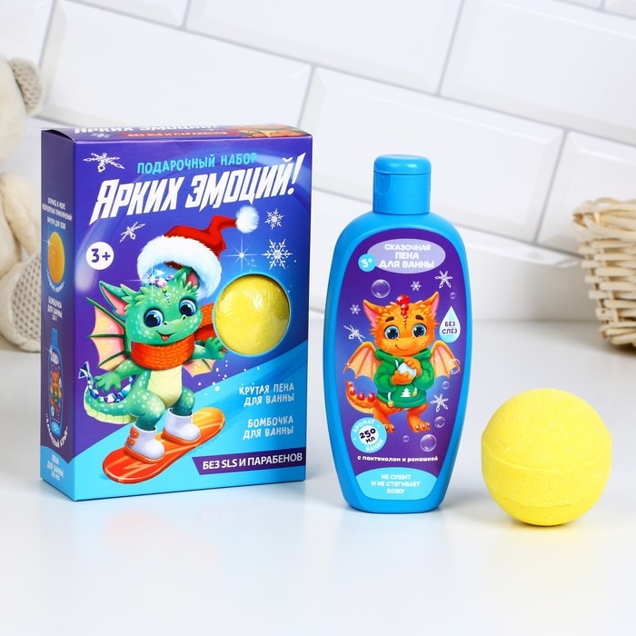 Подарочный набор косметики детский «Ярких эмоций», пена для ванны 250 мл и бомбочка для ванны 130 г, ЧИСТОЕ СЧАСТЬЕ