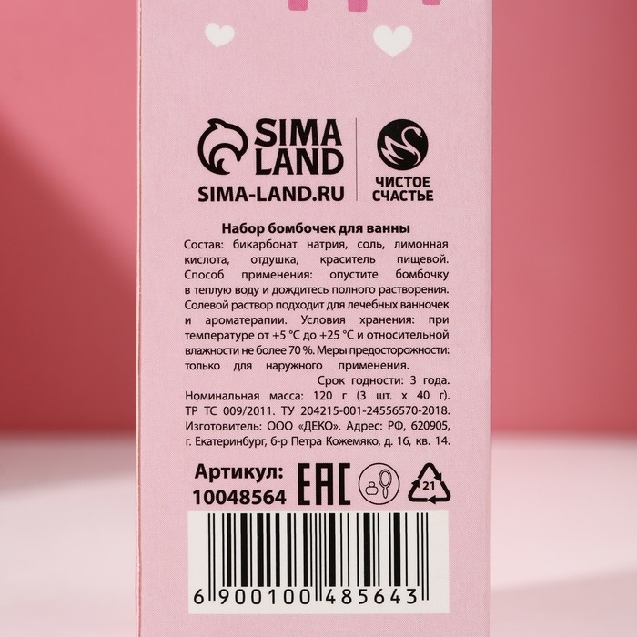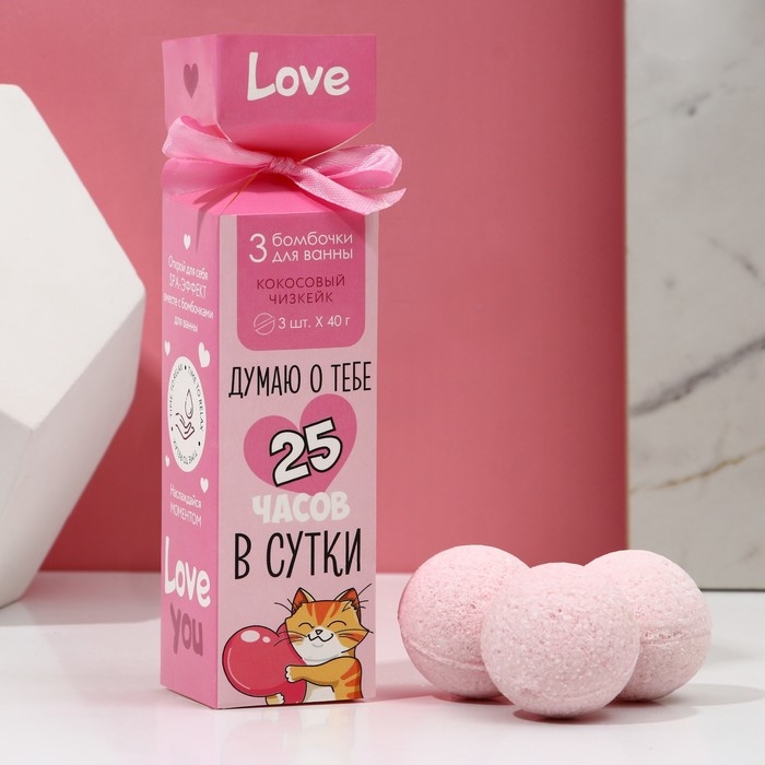 Подарочный набор косметики «Думаю о тебе», бомбочки для ванны 3 х 40 г, ЧИСТОЕ СЧАСТЬЕ