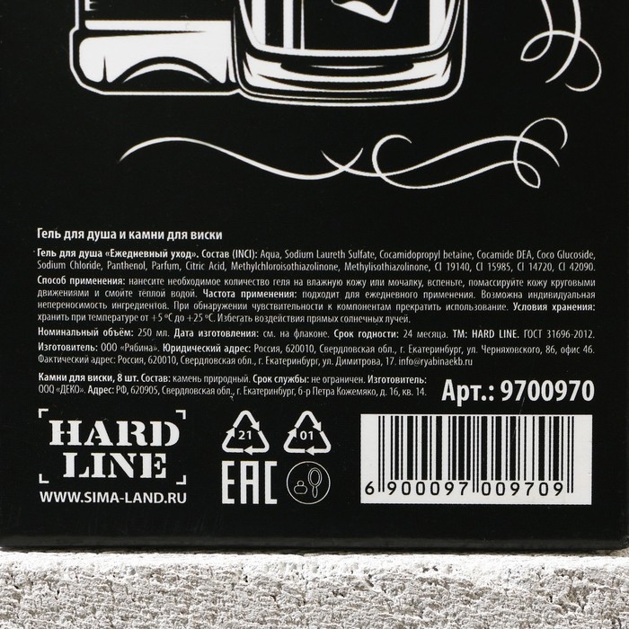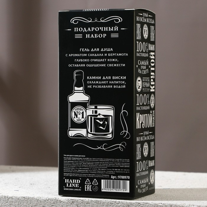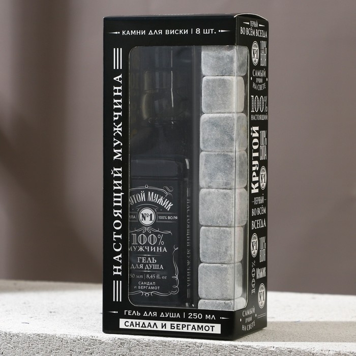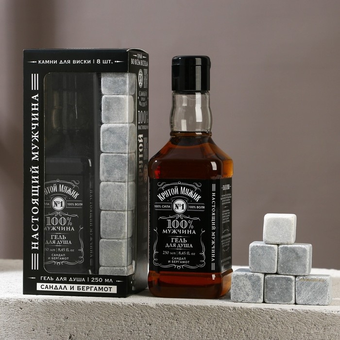 Подарочный набор косметики «Крутой мужик», гель для душа во флаконе виски 250 мл и камни для виски 8 шт, Новый Год