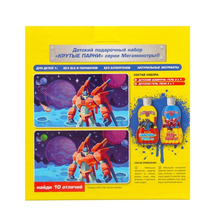 Этот подарочный набор "Крутые парни" предоставляет удовольствие от заботы о детской коже и волосах, а также вносит элемент веселья в ритуалы гигиенического ухода. Подарите вашему малышу радость и заботу с этим ярким и безопасным подарочным набором.