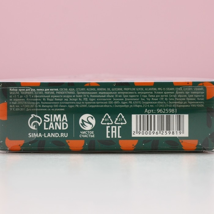 Подарочный набор косметики «Мандаринового настроения!», крем для рук 30 мл и пилка для ногтей, Новый Год