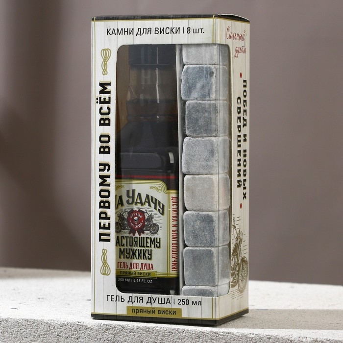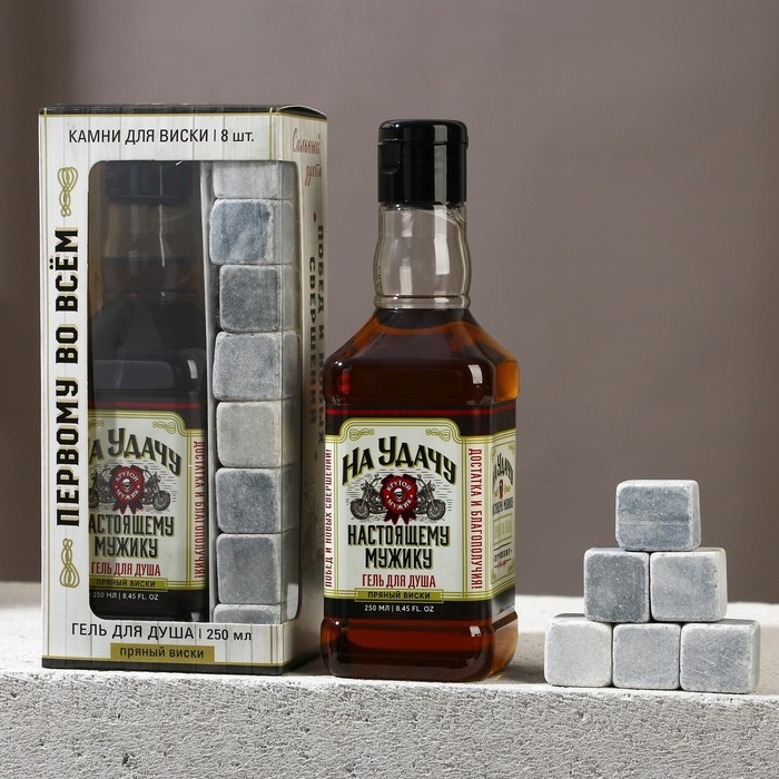 Подарочный набор косметики «На удачу», гель для душа во флаконе виски 250 мл и камни для виски, Новый Год
