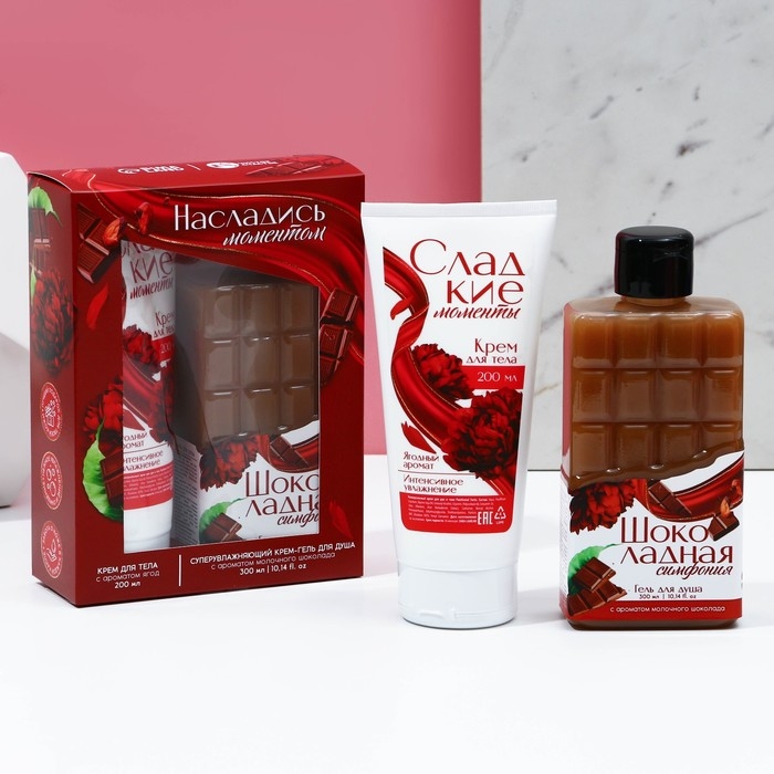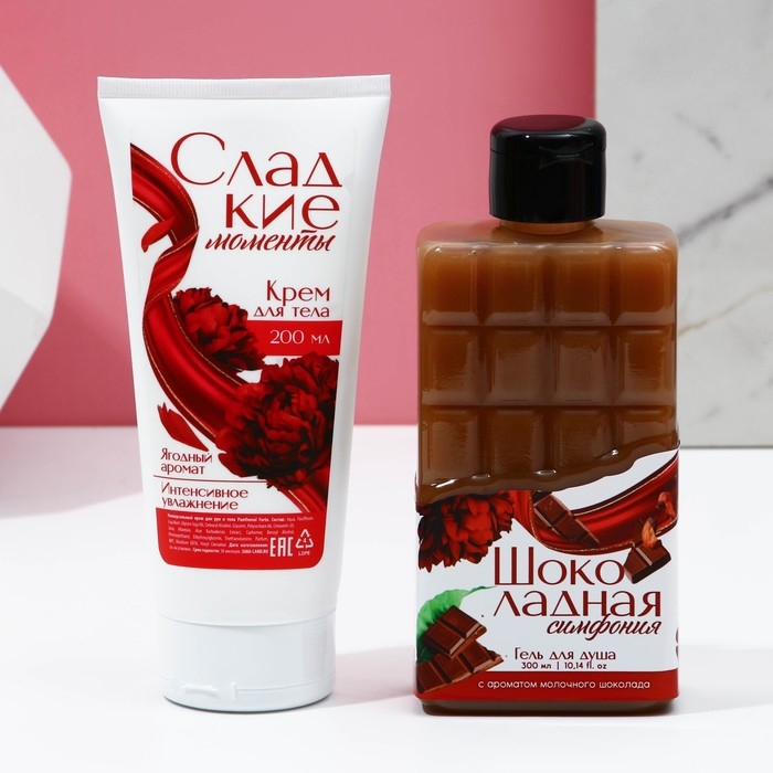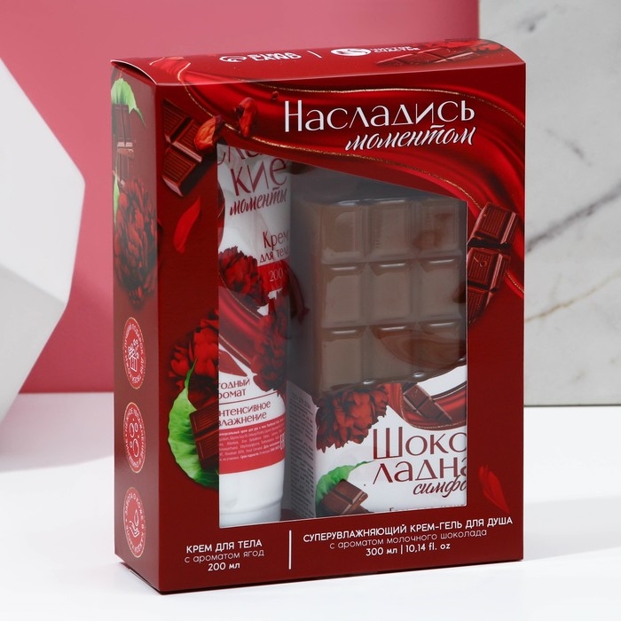 Подарочный набор косметики «Насладись моментом», гель для душа 300 мл и крем для тела 200 мл, ЧИСТОЕ СЧАСТЬЕ