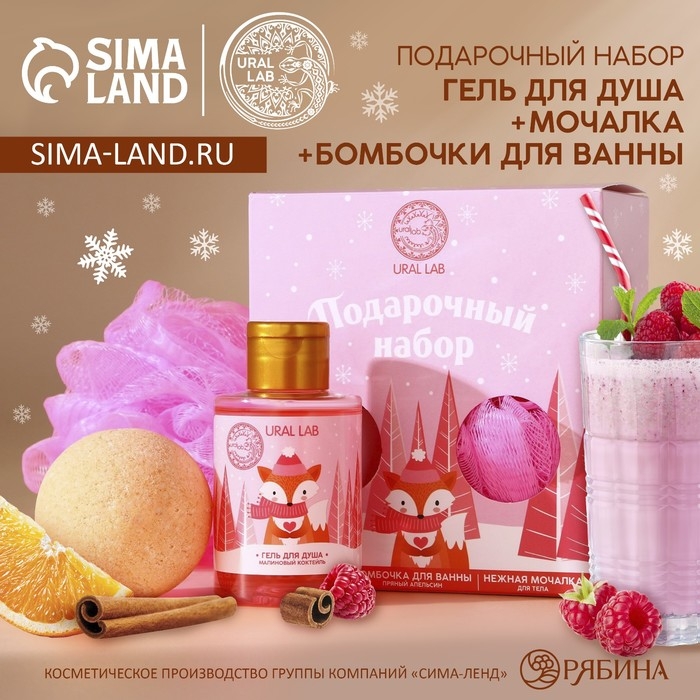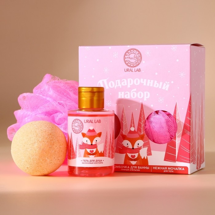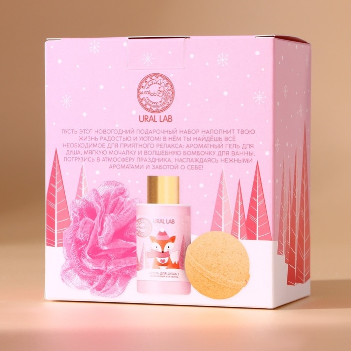 Подарочный набор косметики новогодний, гель для душа 100 мл, бомбочка для ванны 130 г, мочалка для тела, Новый Год