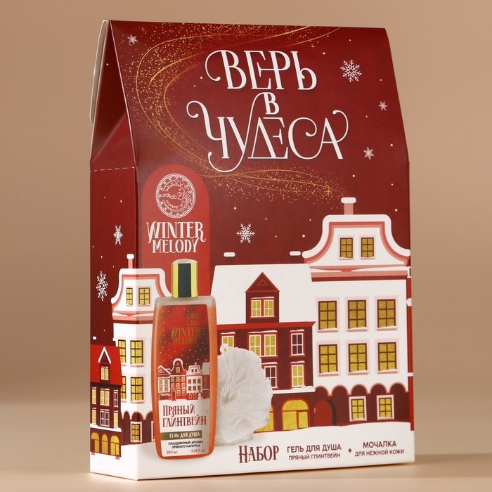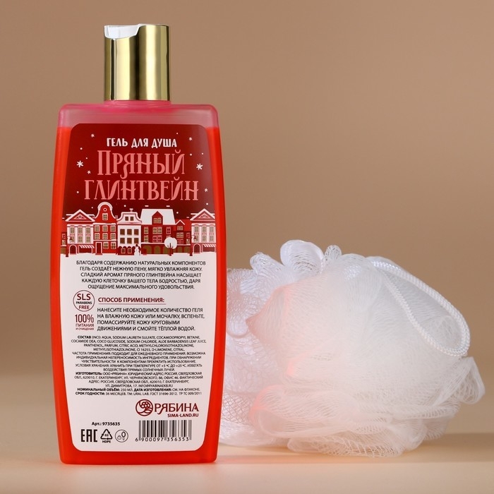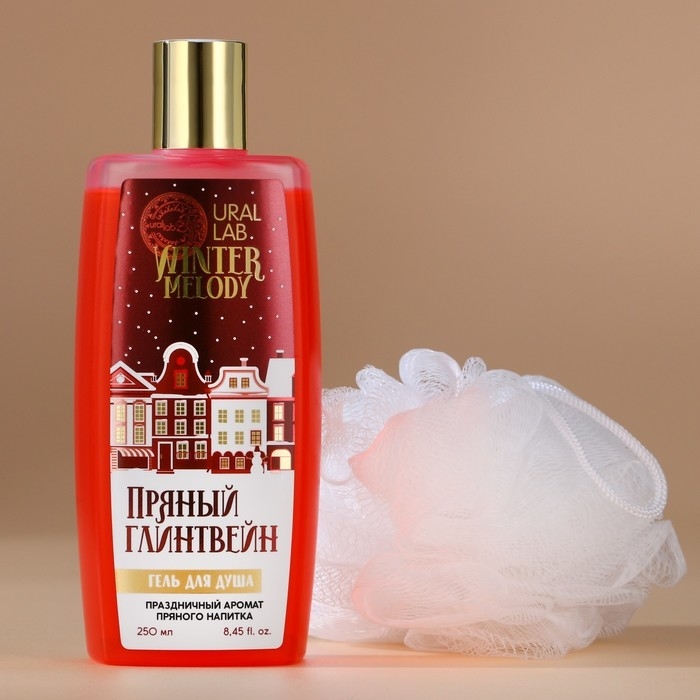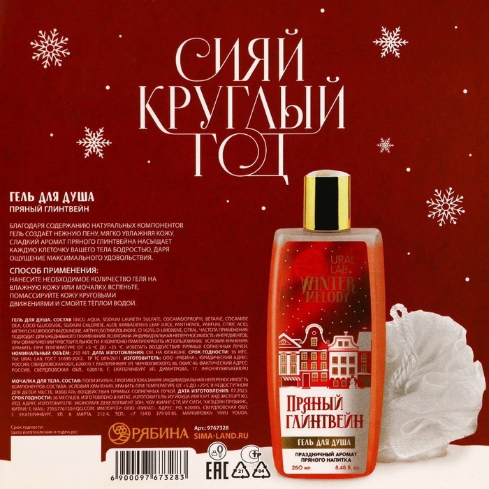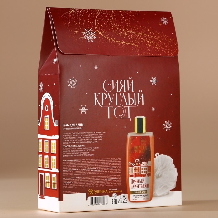 Подарочный набор косметики новогодний, гель для душа 250 мл и мочалка для тела, Новый Год