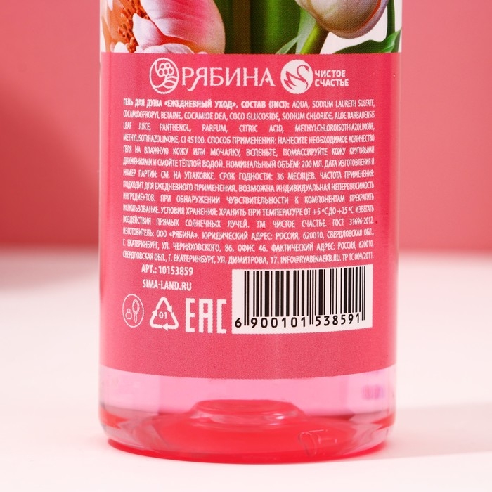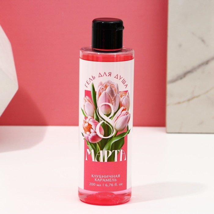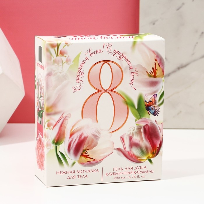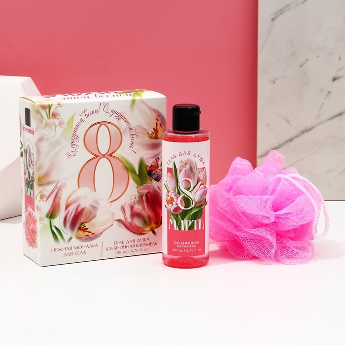Подарочный набор косметики «С 8 Марта!», гель для душа 200 мл и мочалка для тела, ЧИСТОЕ СЧАСТЬЕ