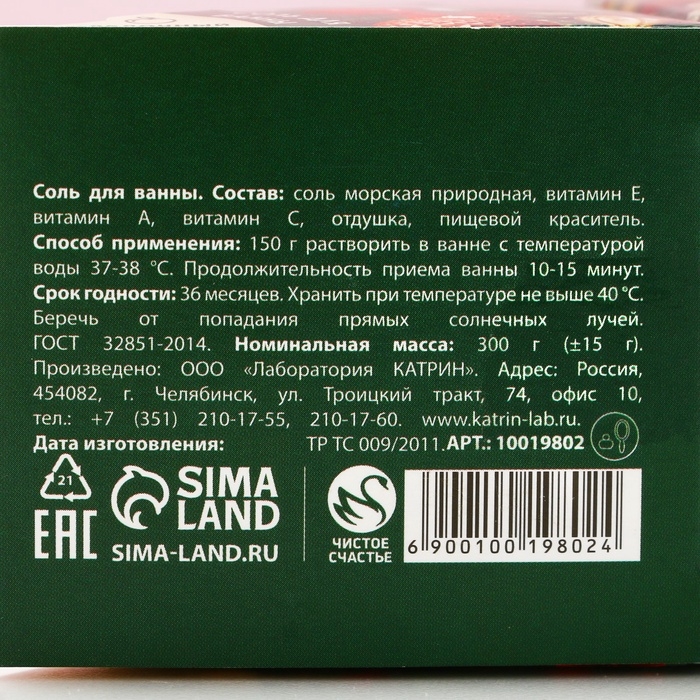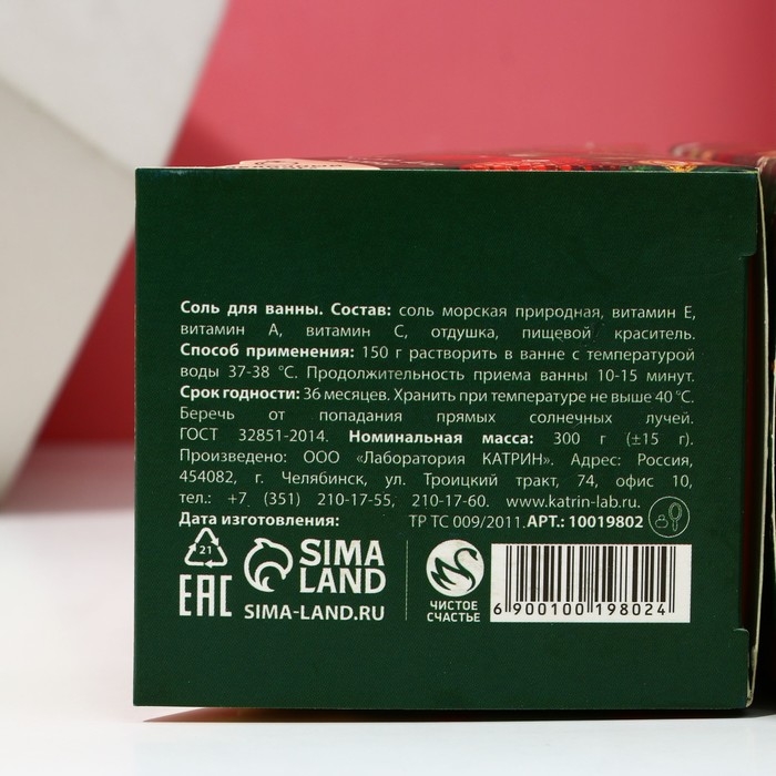 Подарочный набор косметики «С Новым Годом!», соль для ванны, 2 х 150 г, ЧИСТОЕ СЧАСТЬЕ