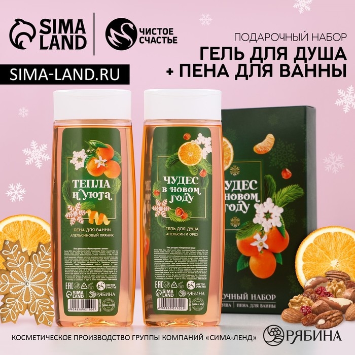 Подарочный набор косметики «Сказочного Нового Года», гель для душа и пена для ванны, 2 х 250 мл, ЧИСТОЕ СЧАСТЬЕ