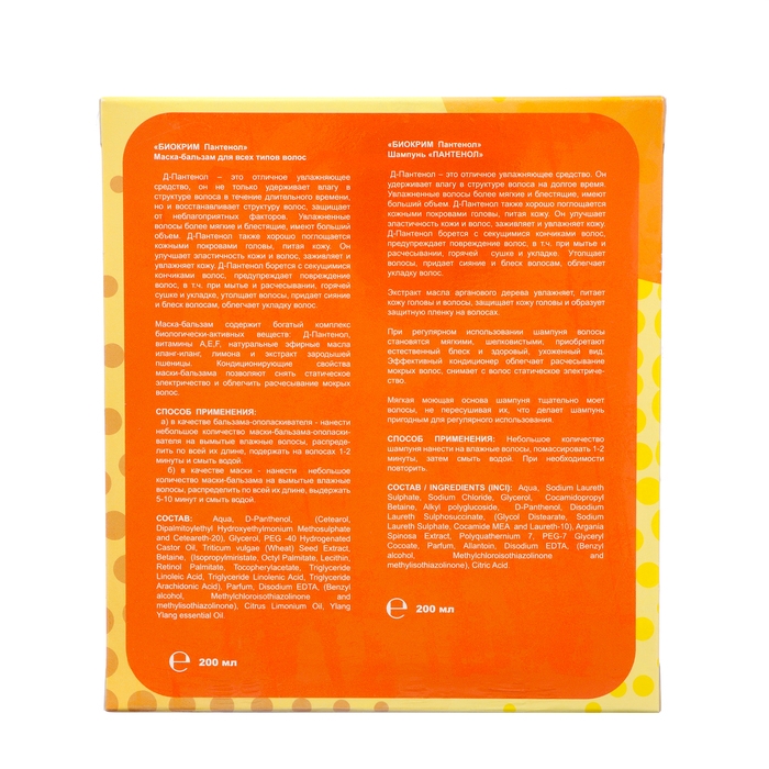 Подарочный набор косметики женский "Пантенол": шампунь, 200 мл + маска для волос, 200 мл