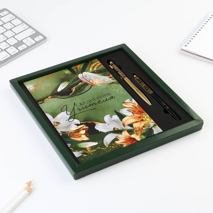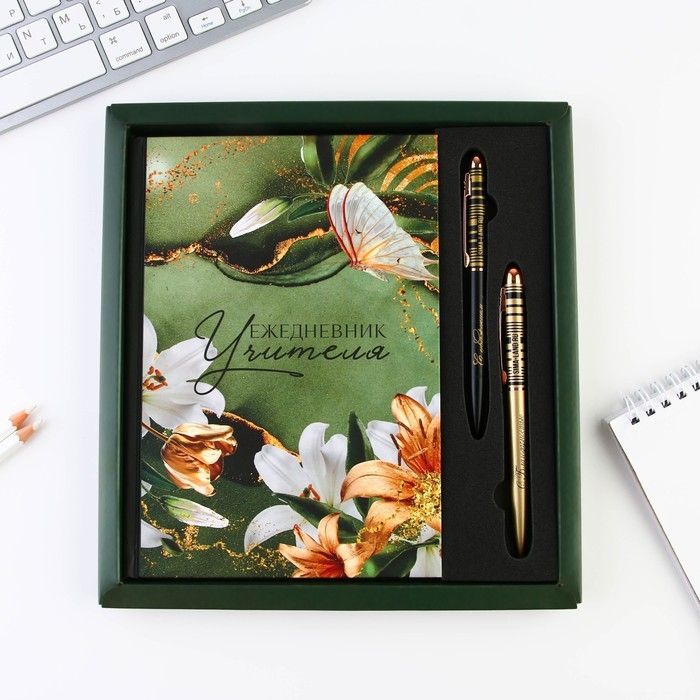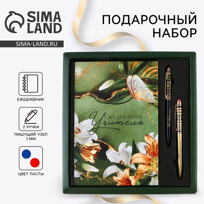 Подарочный набор «Лучшему учителю»: ежедневник А5, 80 листов и 2 шт ручки (шариковые, 1 мм, синяя,красная паста)