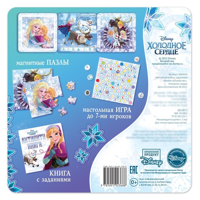 Ощутите зимнее волшебство вместе с героями «Холодного сердца»! Соберите 2 чудесных магнитных пазла, сыграйте в настольную игру всей семьёй и выполните все задания!