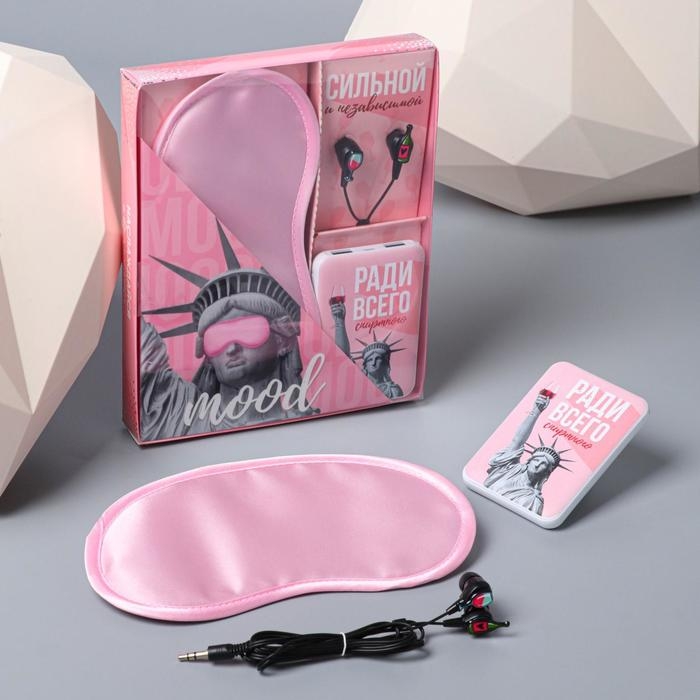 Подарочный набор: наушники, маска для сна и зарядное устройство 5000 mAh м. PB-03 «Mood»,20,5х16,5см.