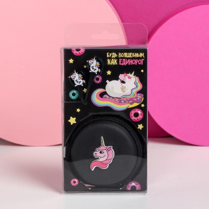 Подарочный набор: наушники вакуумные и кейс для наушников «Единорог», модель VBT - 1,25