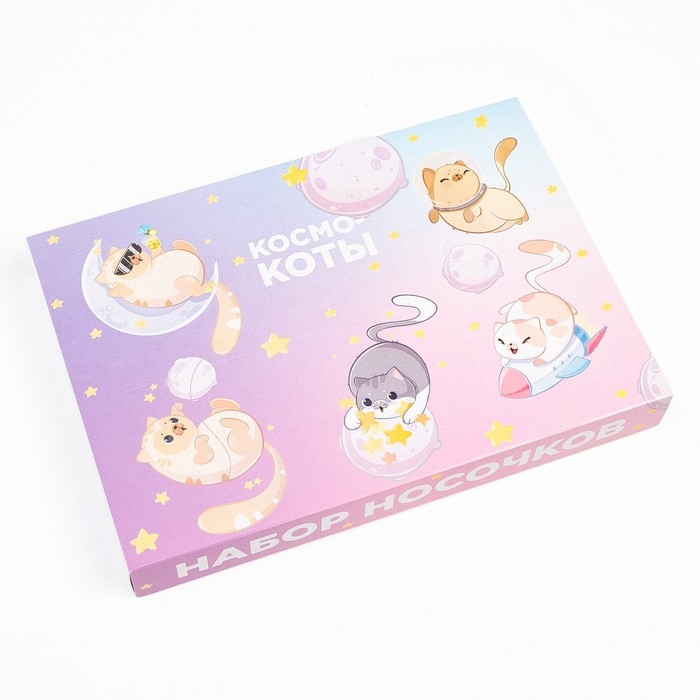 Подарочный набор носков адвент, 6 пар "Космо-котики" , 14-16 см