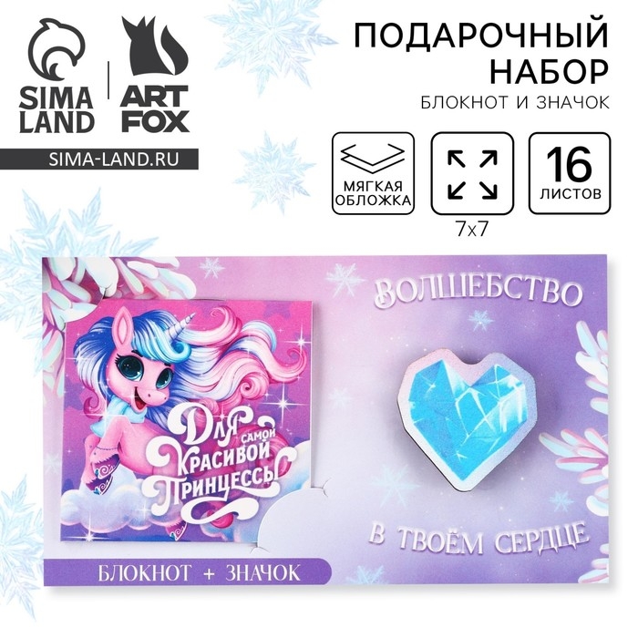 Подарочный набор новогодний, блокнот и значок «Волшебство в твоём сердце»