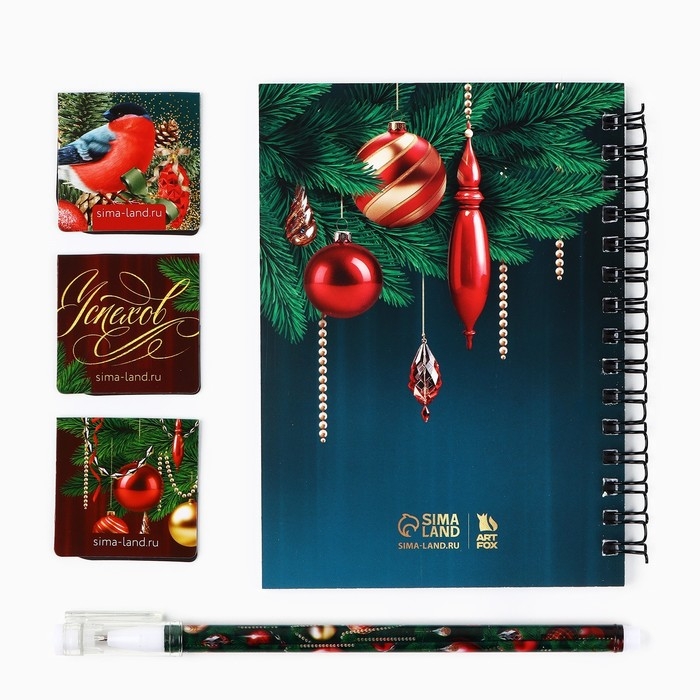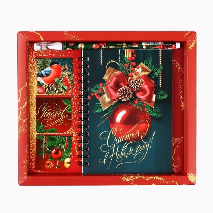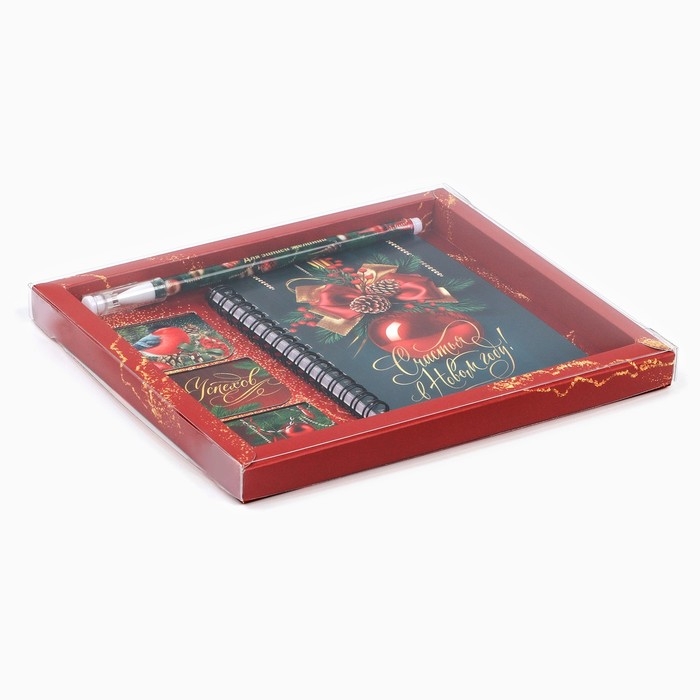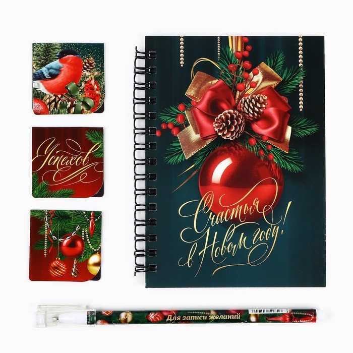Подарочный набор новогодний блокнот на спирали, магнитные закладки 3 шт и ручка пластик «Счастья в Новом году!»