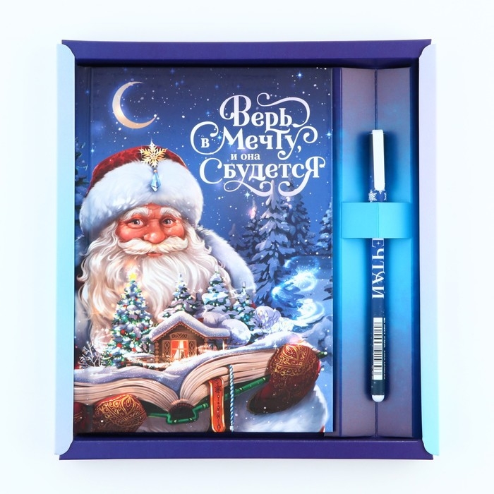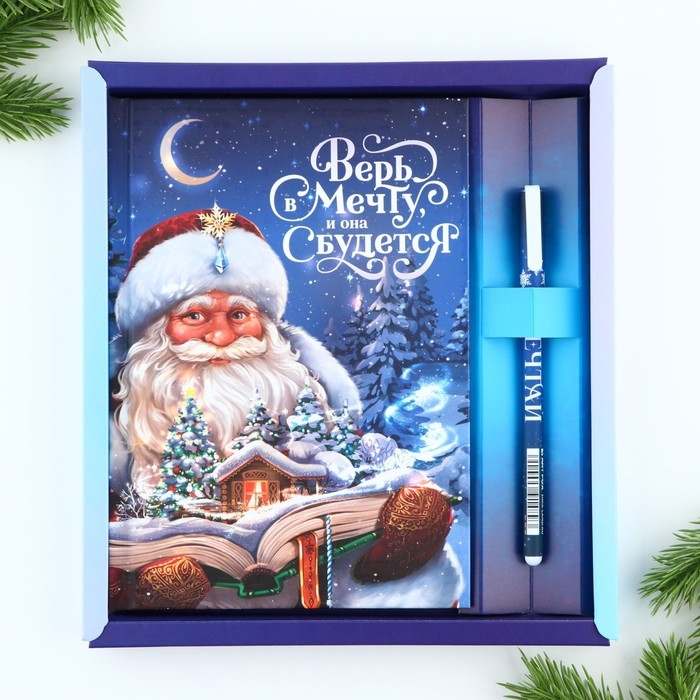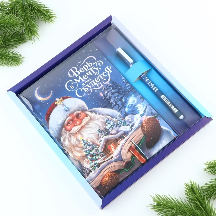Подарочный набор новогодний ежедневник А5, 80 листов и ручка «Верь в мечту»