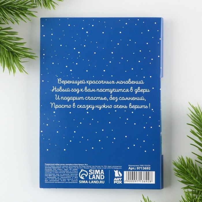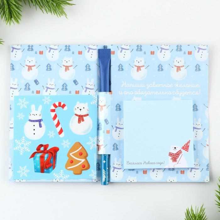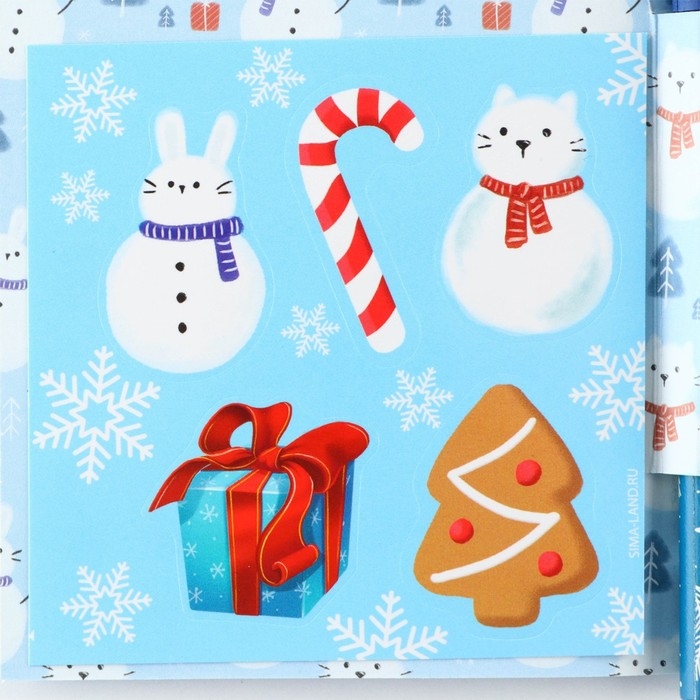 Подарочный набор новогодний «С Новым Годом», блок бумаги 30 л, ручка синяя паста 1.0 мм и 5 шт наклеек