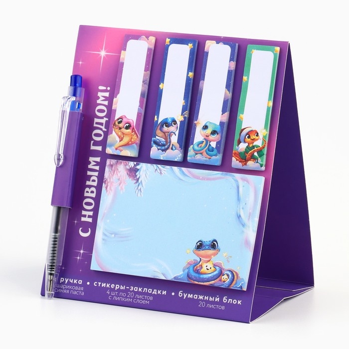 Подарочный набор новогодний, стикеры-закладки и ручка «Пусть зима согреет. Символ года», 20 л в блоке