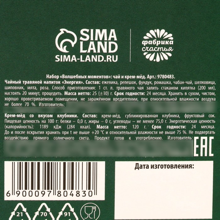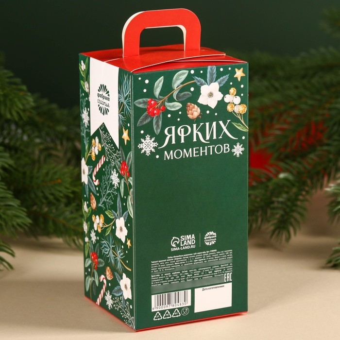 Подарочный набор новогодний «Волшебных моментов»: травяной чай, мёд кремовый с клубникой