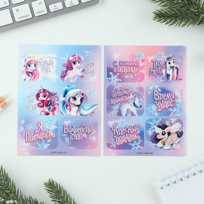 Подарочный набор новогодний «Волшебство рядом»: блокнот, карандаши, наклейки и значок