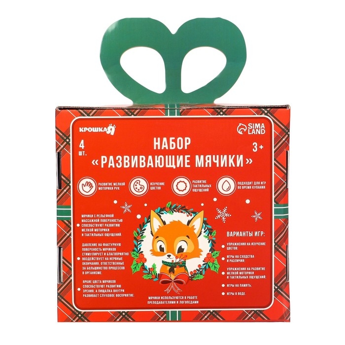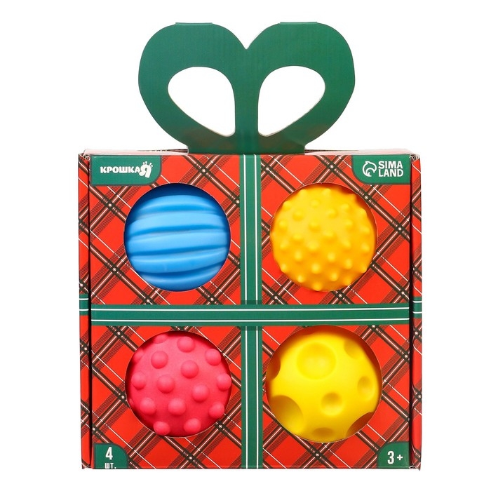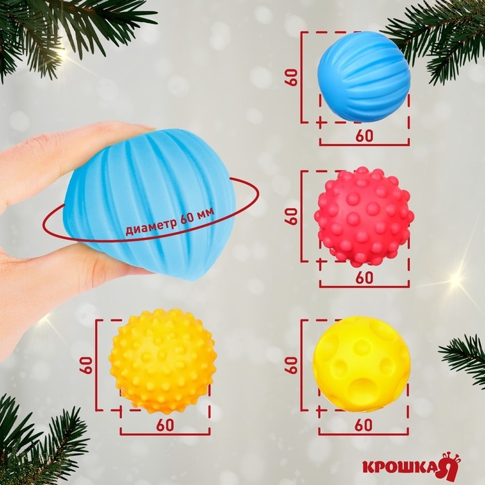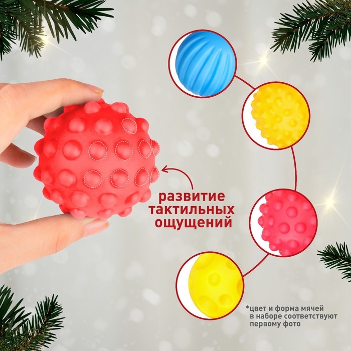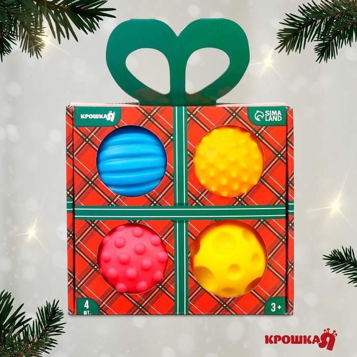 Подарочный набор развивающих тактильных мячиков «Подарочек», 4 шт., новогодняя упаковка, Крошка Я