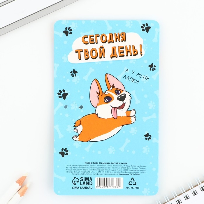 Подарочный набор ручка шариковая и блок бумаги 30 л «Я бы сам написал, но у меня лапки»