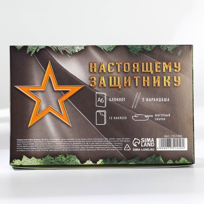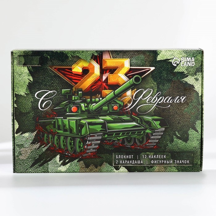 Подарочный набор «С 23 февраля»: блокнот А6 32 листа, значок, наклейки 12 шт, карандаши 2 шт