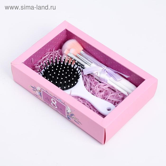 Подарочный набор «С 8 Марта», кисти для макияжа 4 шт и расческа, BEAUTY FOX