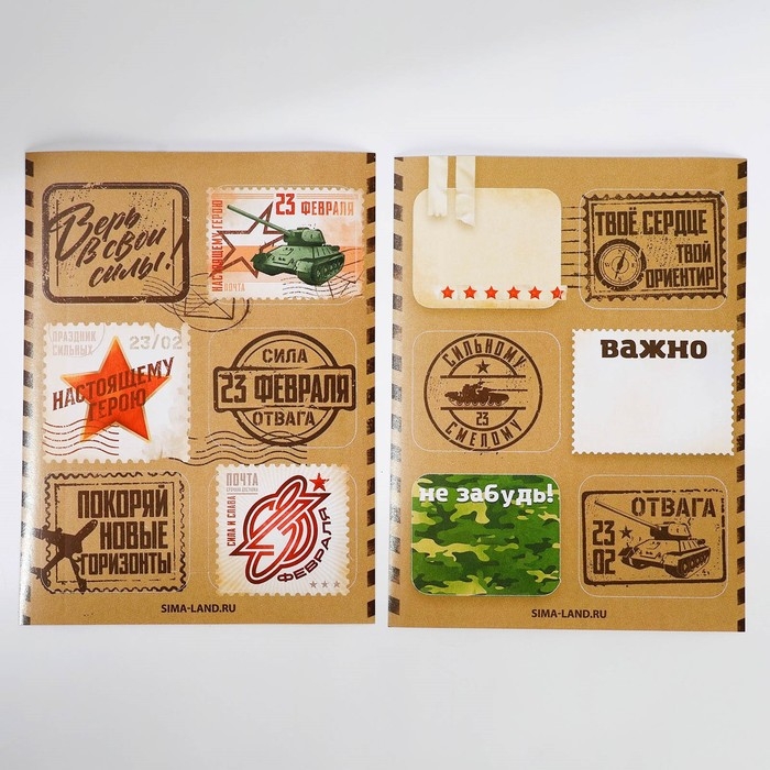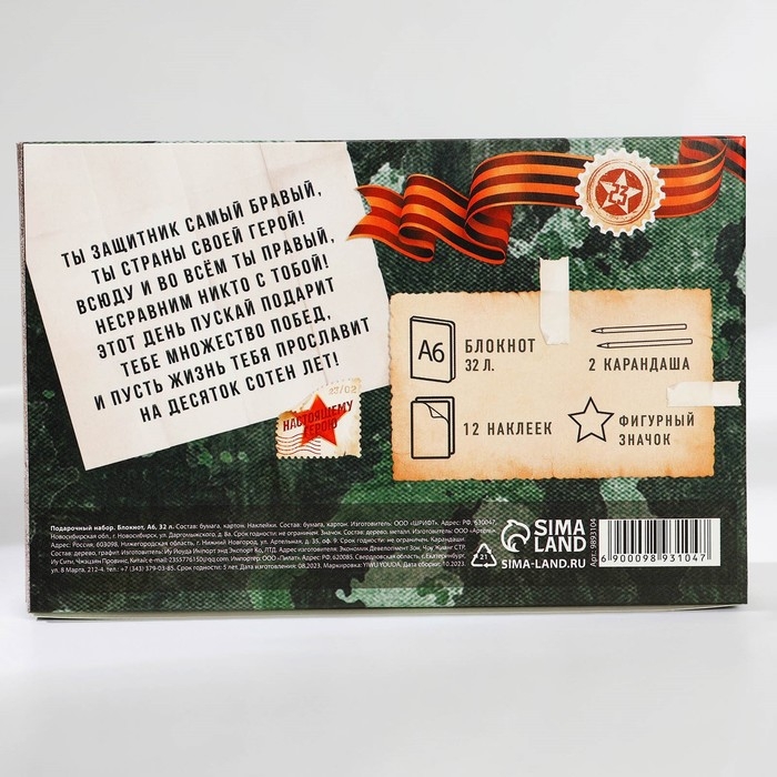 Подарочный набор «С днем защитника отечества» блокнот А6, значок, наклейки и карандаши 2 шт