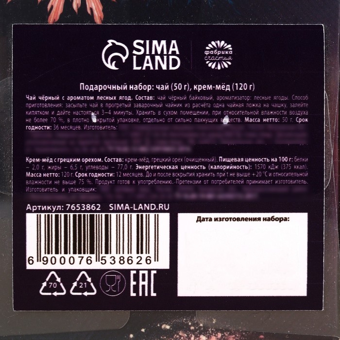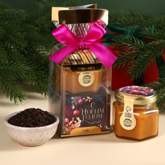 Подарочный набор «С Новым годом»: чай 50 г., крем-мёд с грецким орехом, 120 г.