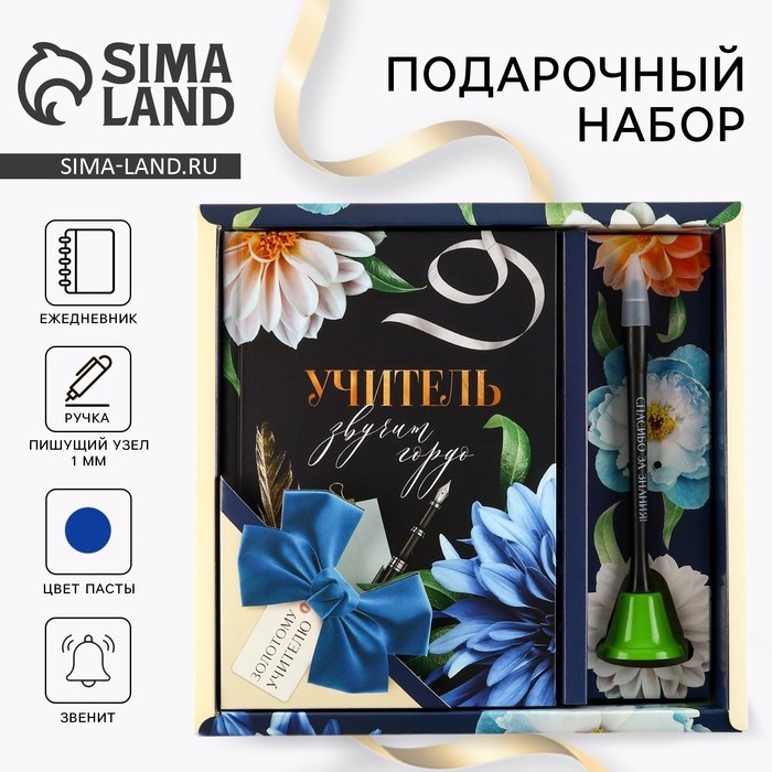 Подарочный набор «Дорогому учителю»: ежедневник и ручка-колокольчик (шариковая, синяя паста, 1 мм)