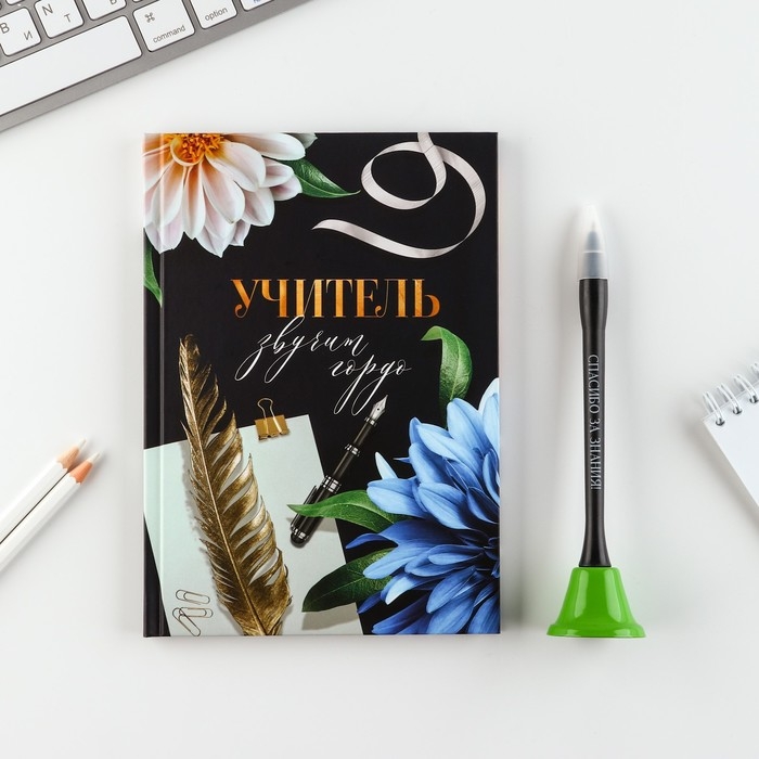 Подарочный набор «УЧИТЕЛЬ звучит гордо»: ежедневник и ручка-колокольчик (шариковая, синяя паста, 1 мм)