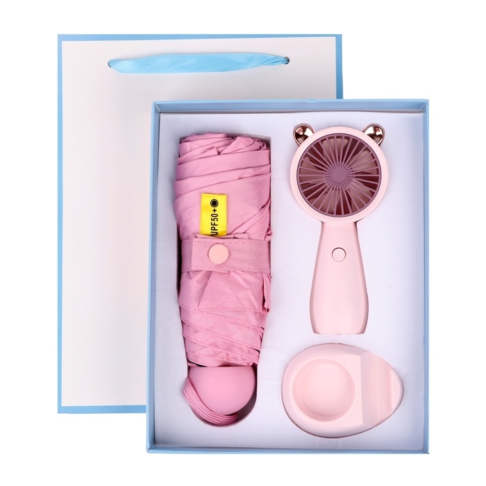 Подарочный набор вентилятор и зонт, розовый