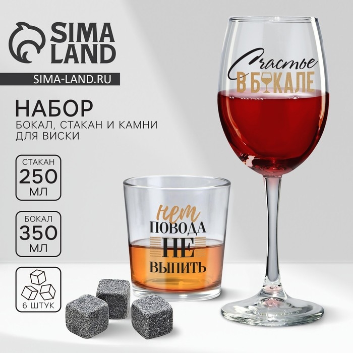 Подарочный набор «Вино, ты, сыр», стакан 250 мл с камнями для виски и бокал для вина 350 мл